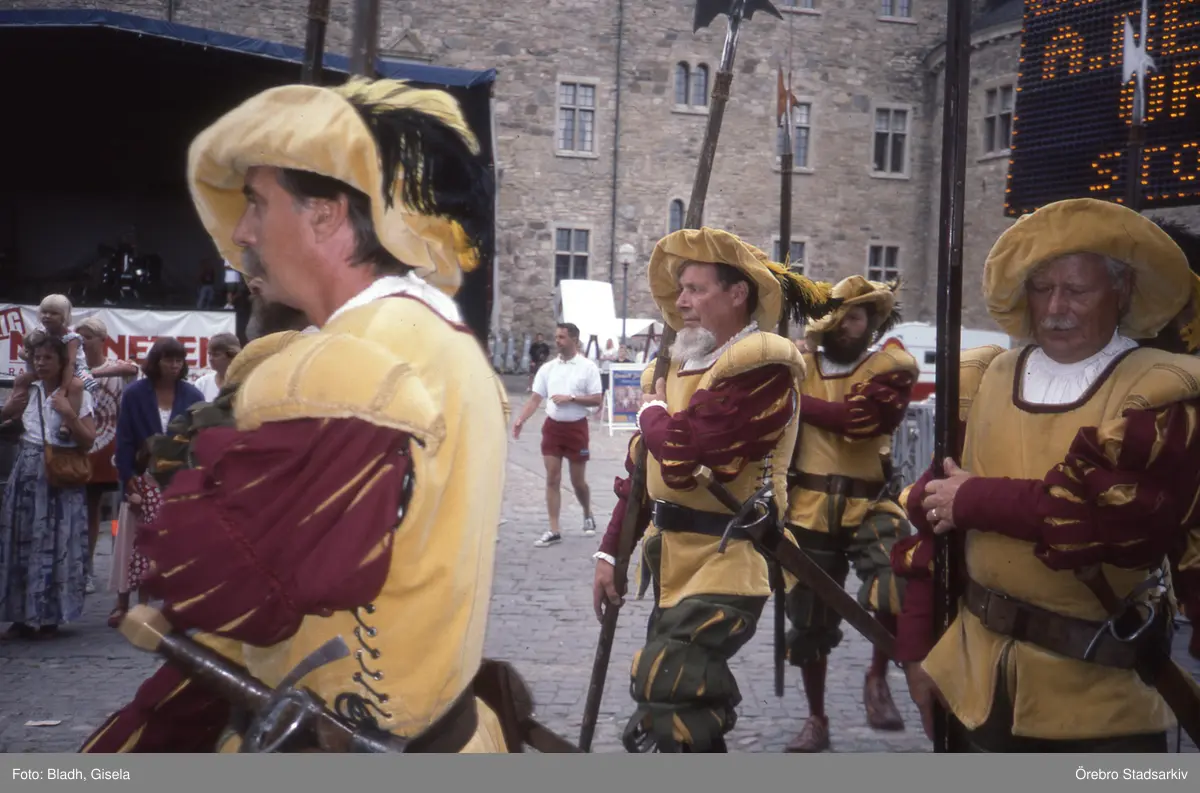 Soldater paraderar vid slottsfestivalen vid Örebro slott, 1994