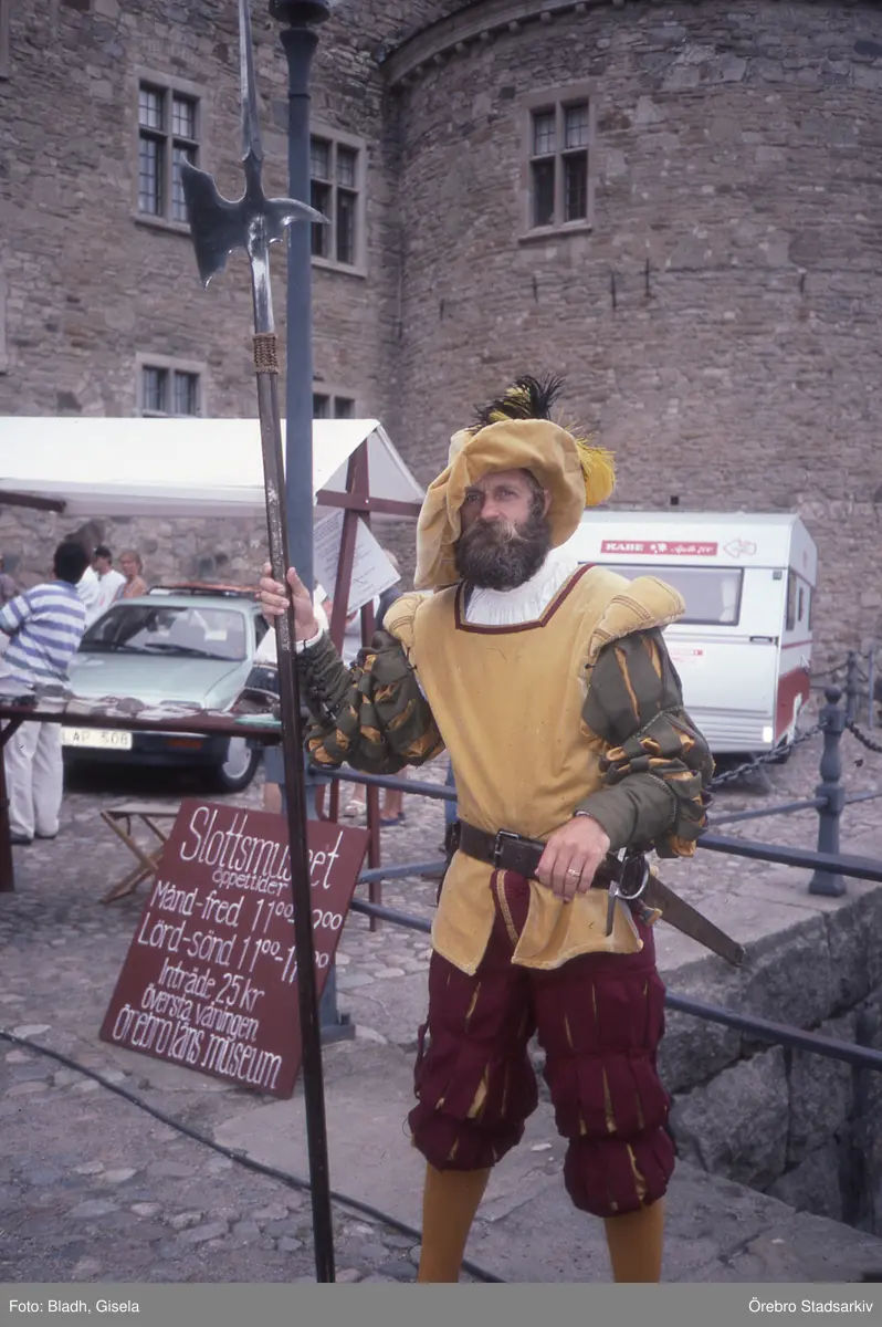 Vakt med spjut vid Örebro slott på slottsfestivalen, 1994