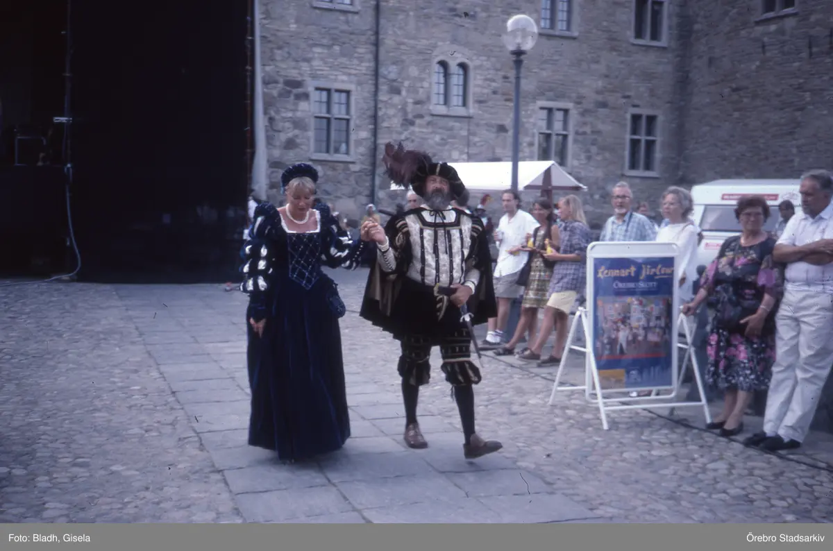 Par i medeltida kläder går mot Slottsfestivalen vid Örebro slott, 1994