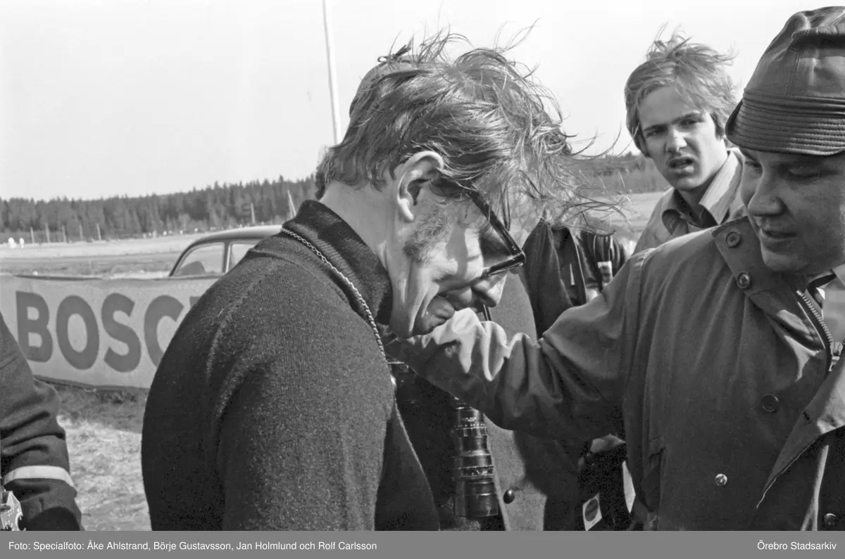 Efter tävlingen. Karlskoga motorstadion, 1969-05-03
