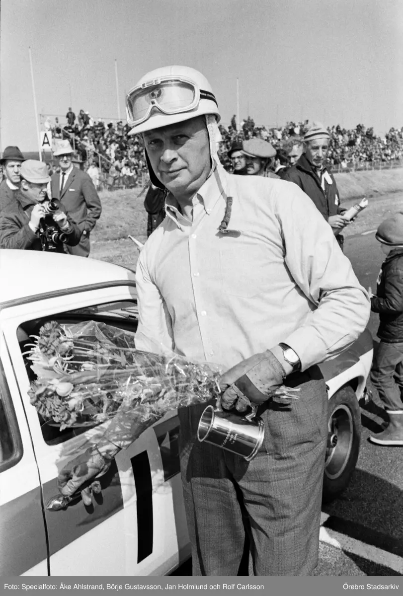 Segraren Bosse Ljungfeldt. Karlskoga motorstadion, 1969-05-03