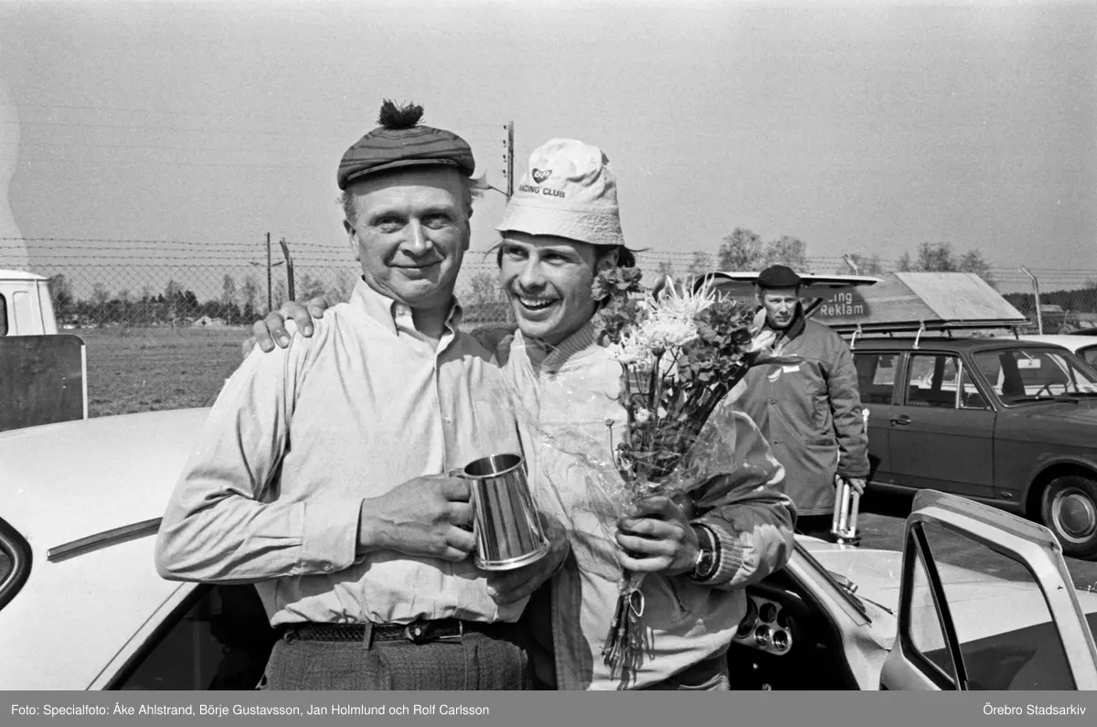 Segraren gratuleras. Karlskoga motorstadion, 1969-05-03