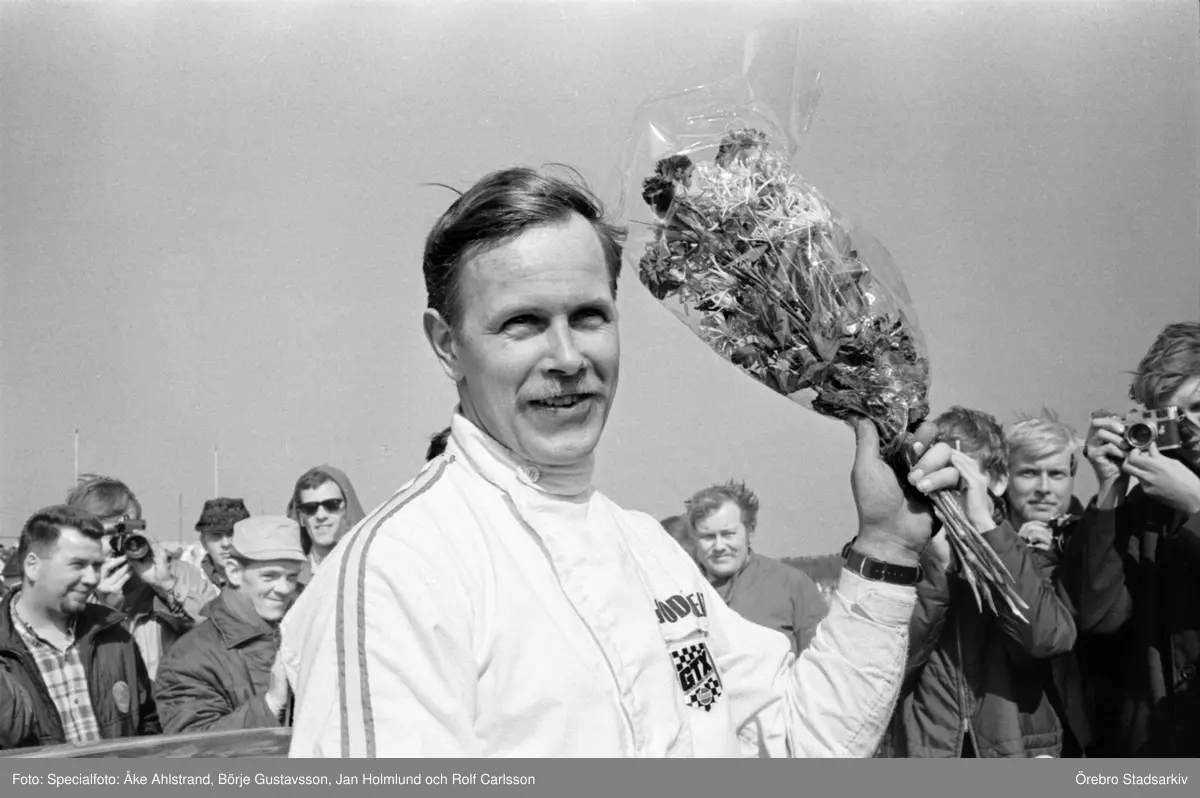 Segraren höjer blomkvasten. Karlskoga motorstadion, 1969-05-03