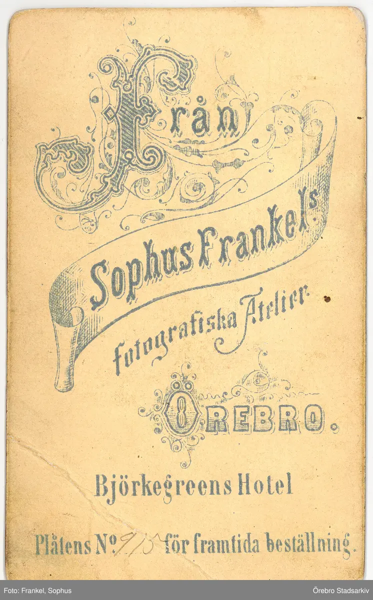 Baksida till visitkort från Sophus Frankel, 1866-1872