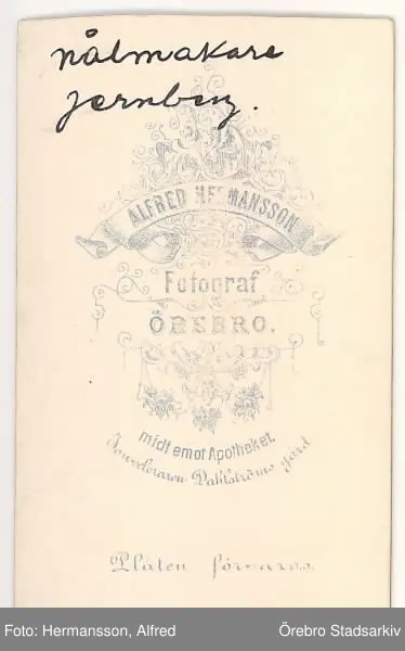 Baksida till visitkort från Alfred Hermansson, efter 1875