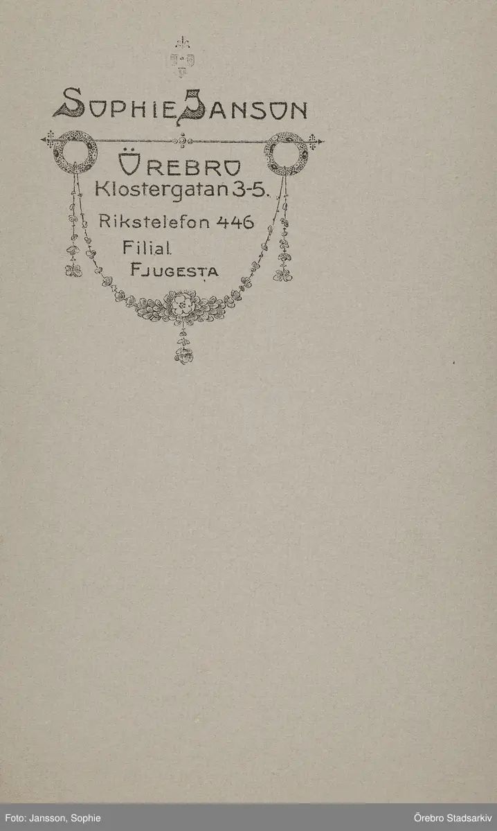 Baksida till visitkort från Sophie Jansson, ca 1909