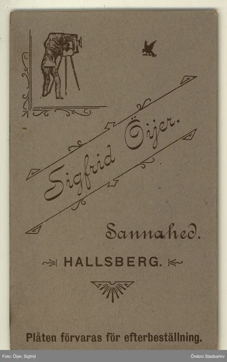 Baksida till visitkort från Sigfrid Öijer, omkring 1900