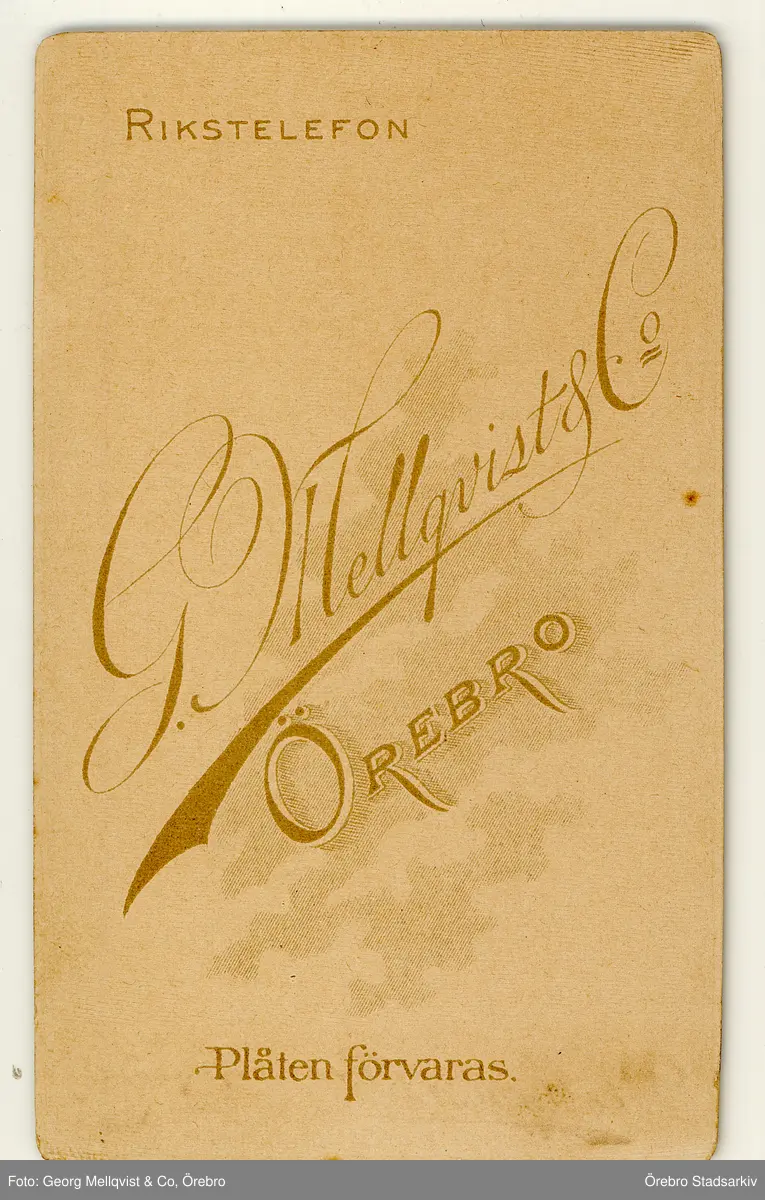 Baksida till visitkort från G. Mellqvist & Co, efter 1900