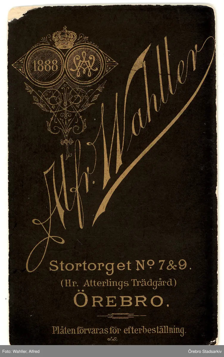 Baksida till visitkort från Alfred Wahller, 1888-1895