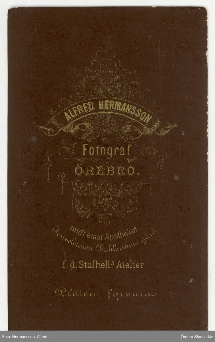 Baksida till visitkort från Alfred Hermansson, efter 1875