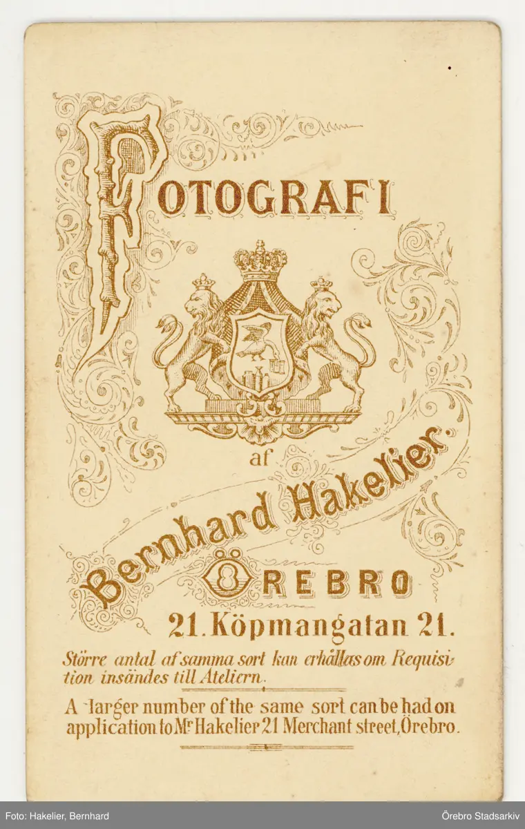 Baksida till visitkort från Bernhard Hakelier, efter 1871