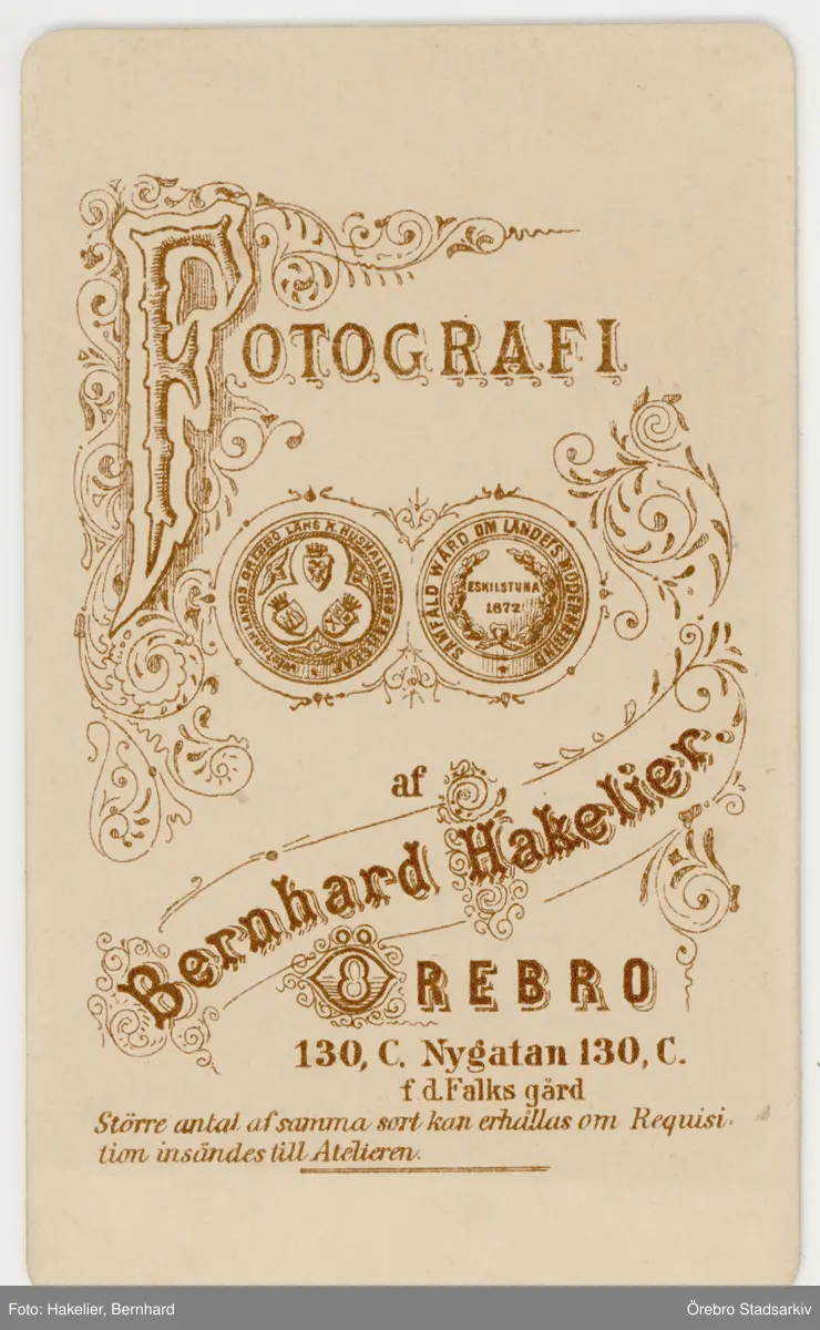 Baksida till visitkort från Bernhard Hakelier, efter 1900