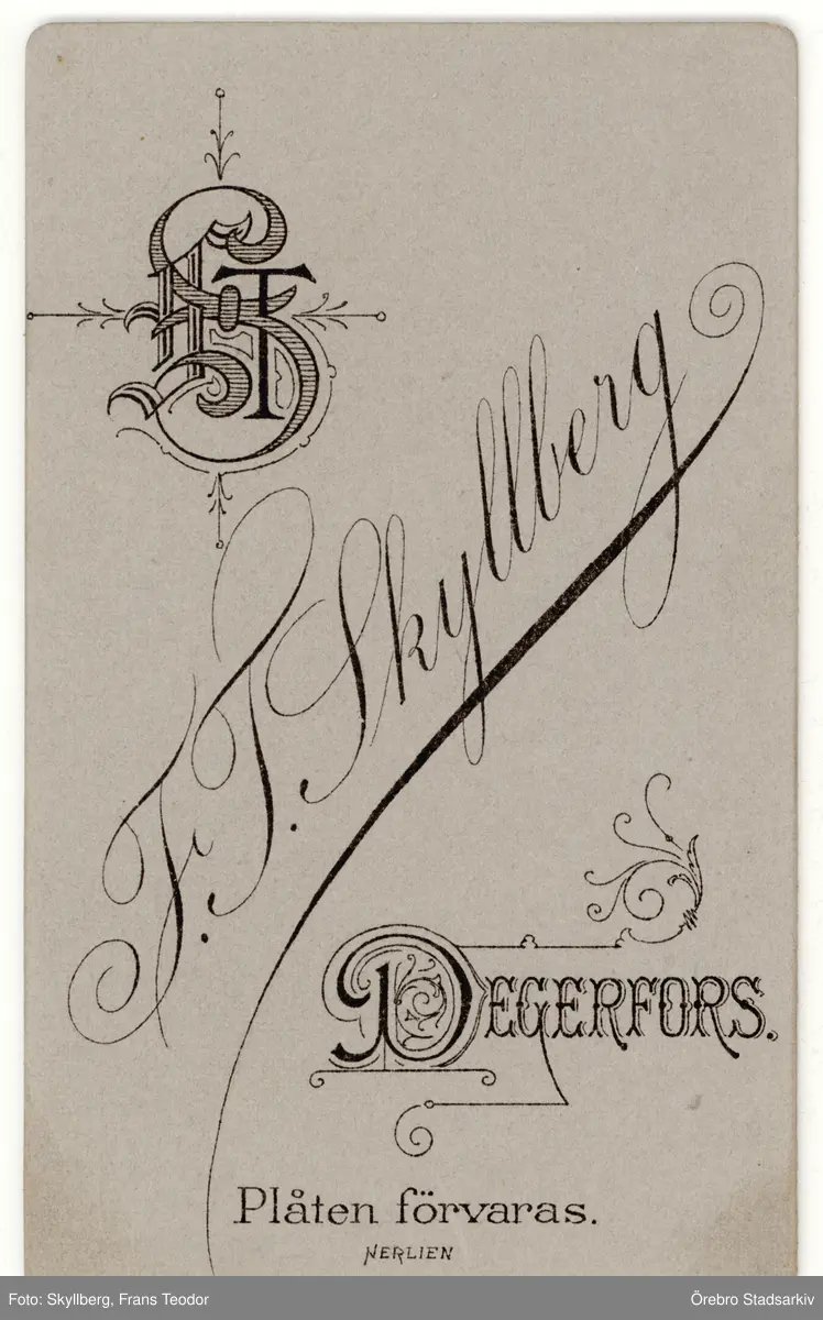 Baksida till visitkort från F. T. Skyllberg, 1892-1904