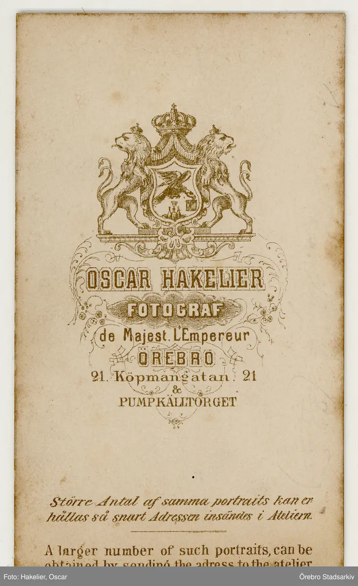 Baksida till visitkort från Oscar Hakelier, ca 1871