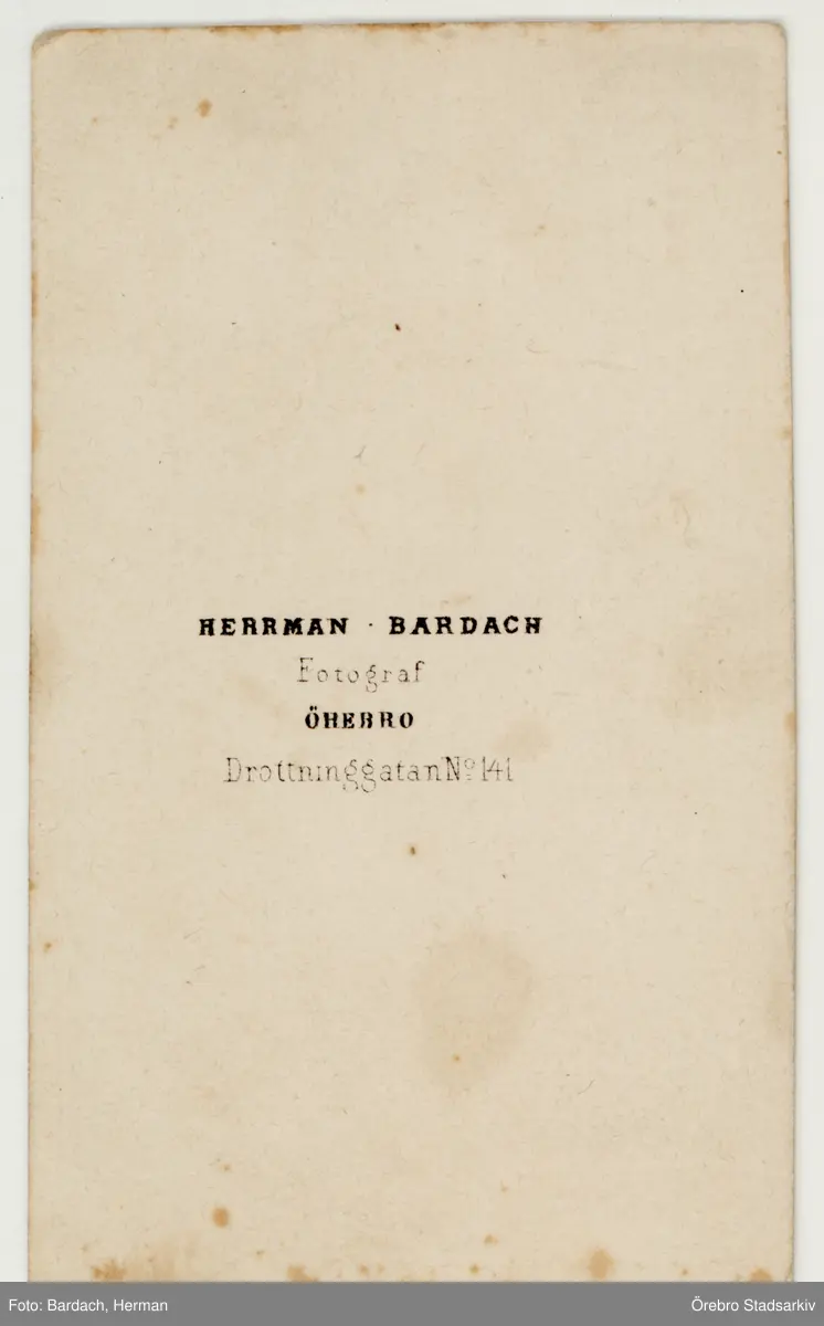 Baksida till visitkort från Herman Bardach, 1864-1865