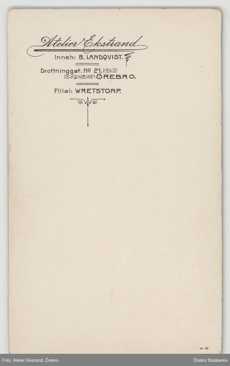 Baksida till visitkort från Atelier Ekstrand, ca 1903