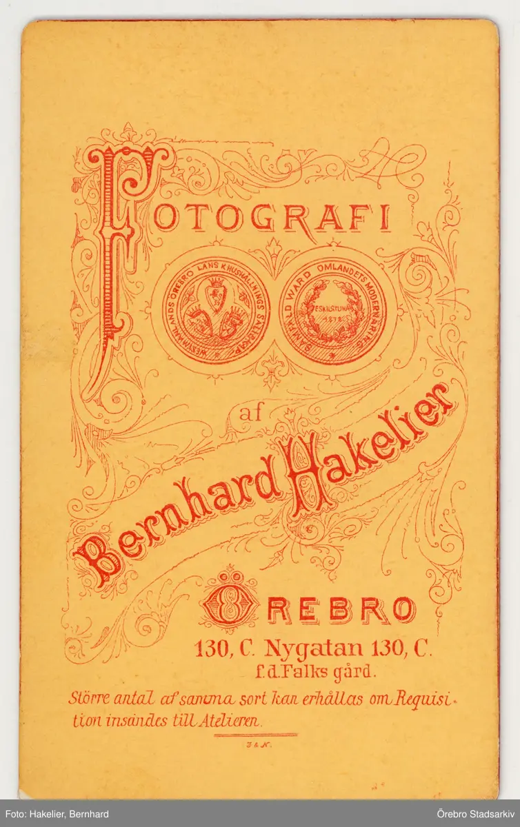 Baksida till visitkort från Bernhard Hakelier, efter 1900