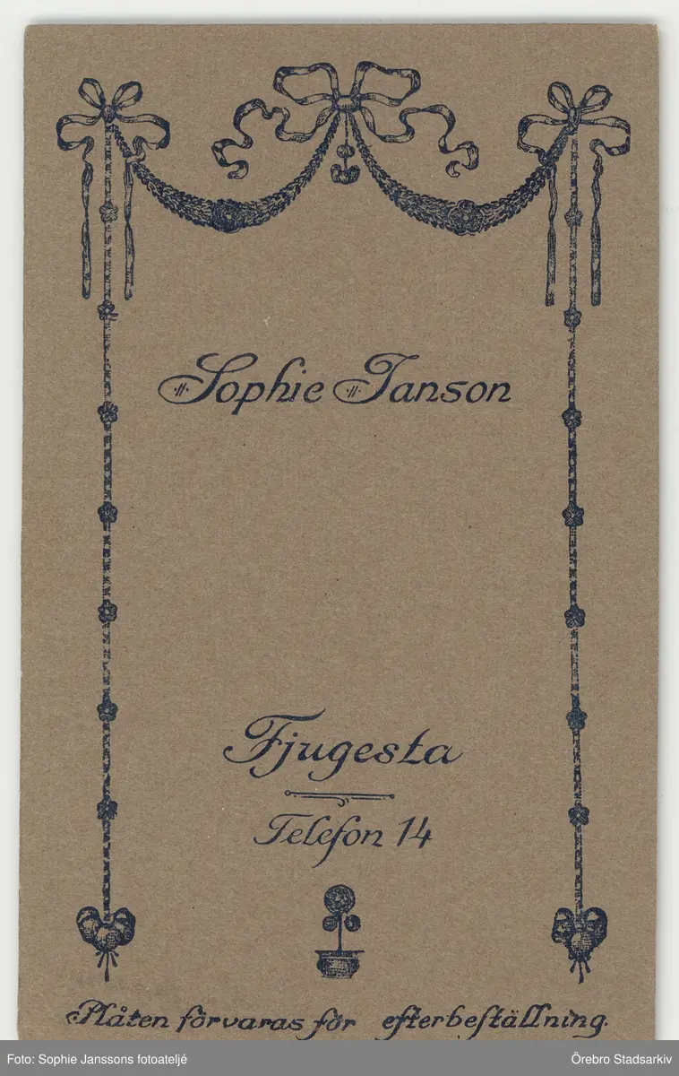 Baksida till visitkort från Sophie Jansson, efter 1909