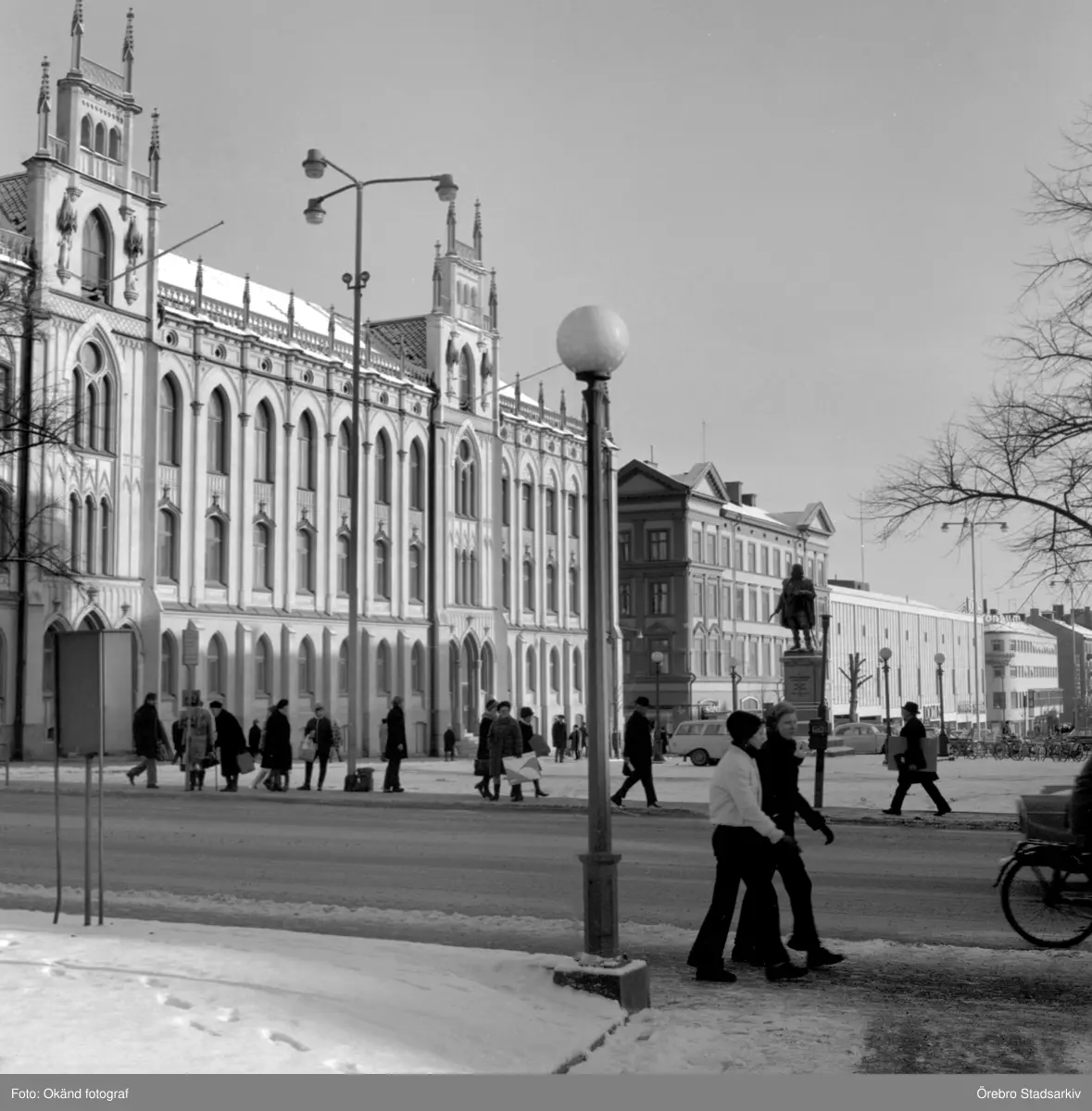 Väntan vid busshållplats vid Rådhuset i Örebro, 1965
