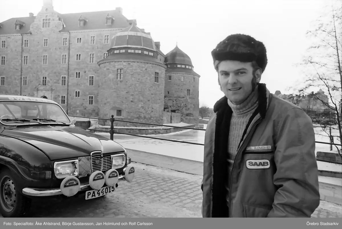 Mäster Stig poserar framför Örebro slott, 1971-03-04
