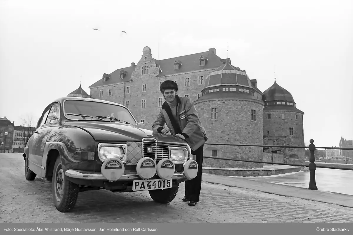 Mäster Stig poserar framför Örebro slott, 1971-03-04