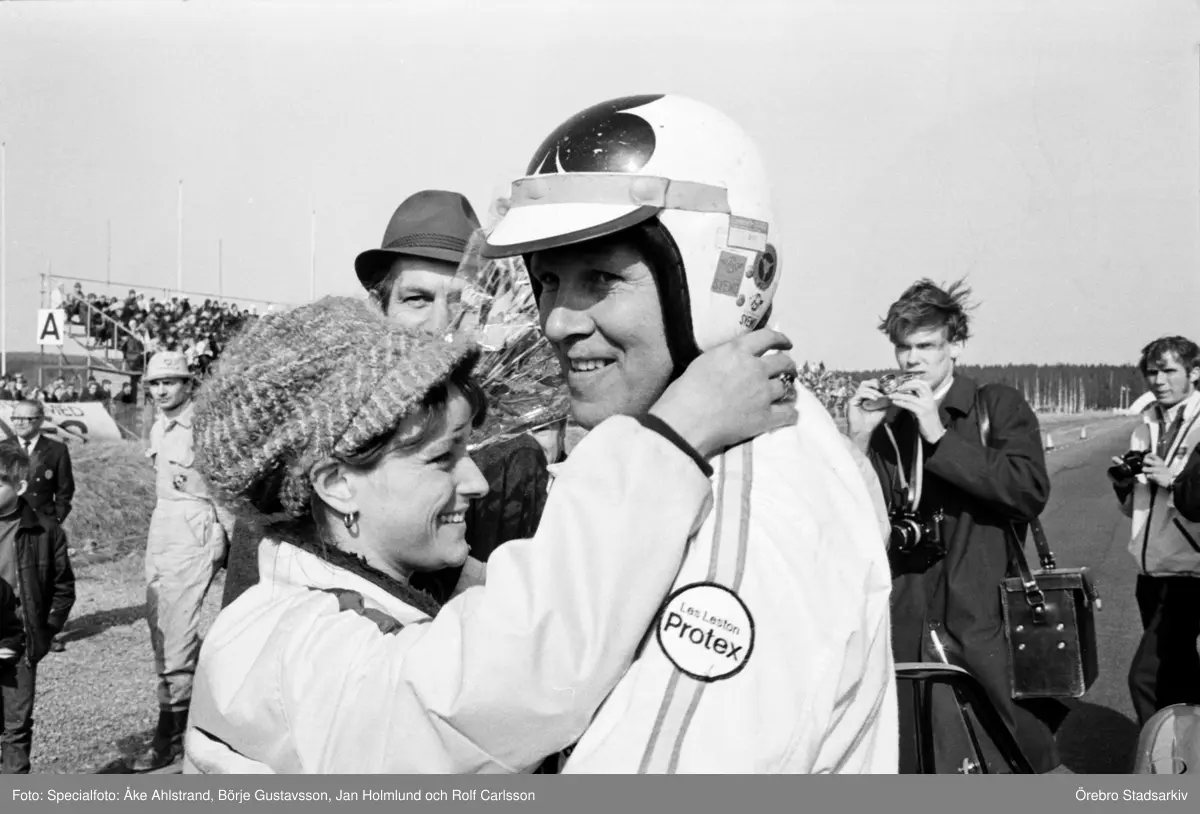 Gunnarsson gratuleras. Karlskoga motorstadion, 1969-05-03