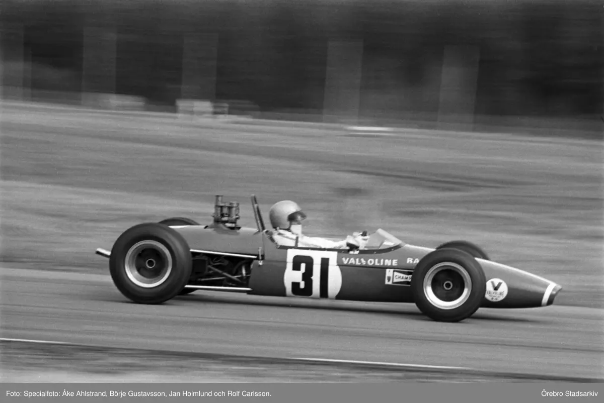 Norrman på Velodromloppet. Karlskoga motorstadion. 1969-05-03