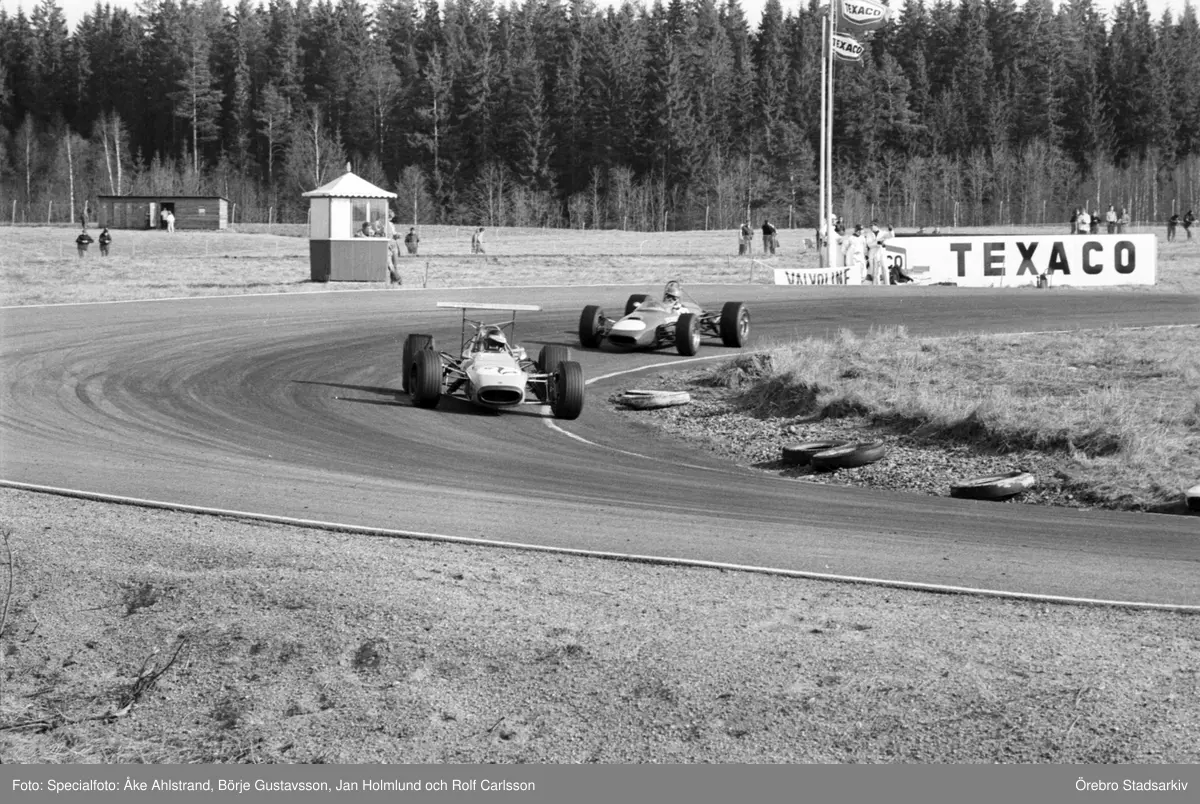 Hård kurvtagning på Karlskoga motorstadion, 1969-05-03