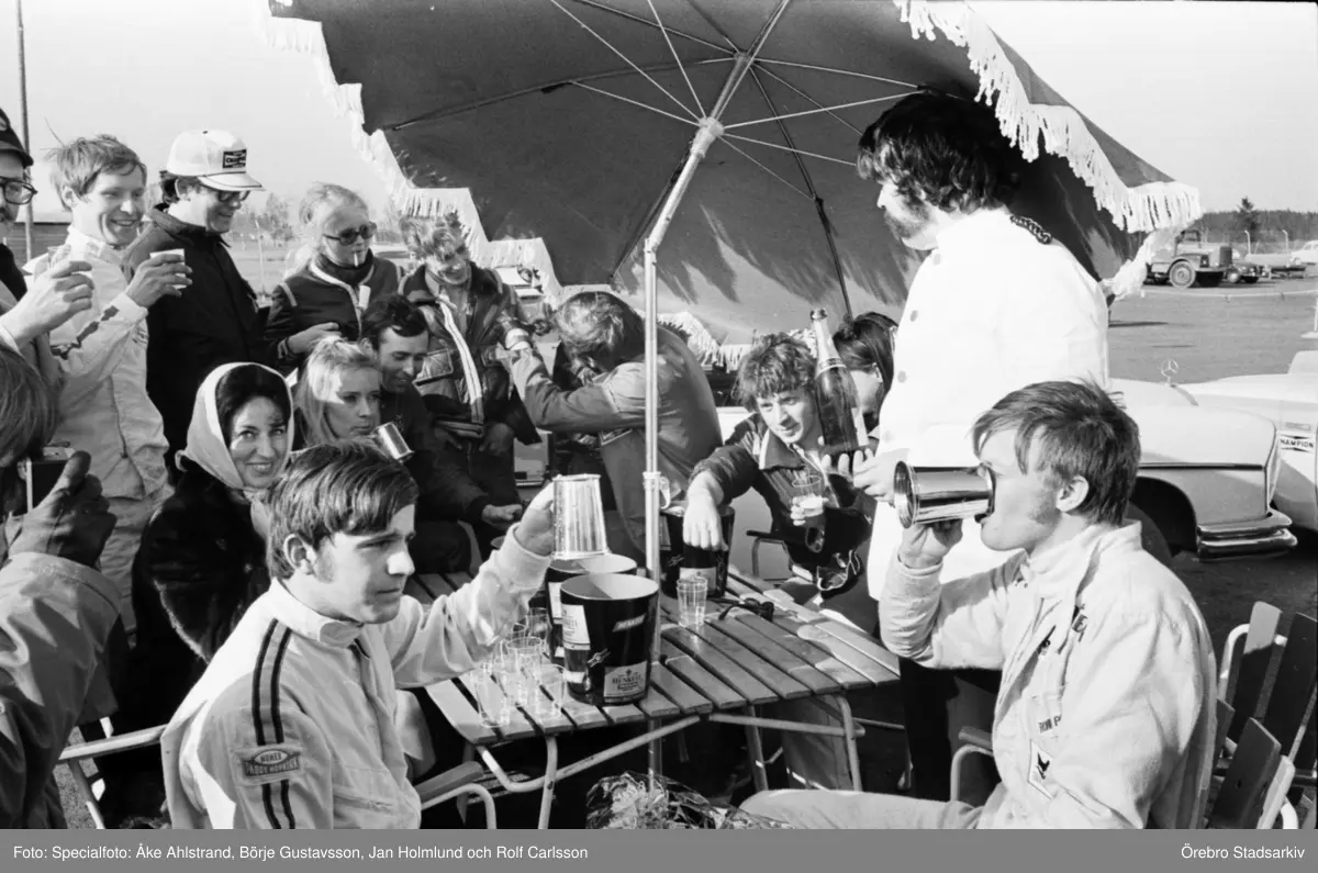 Segerchampagne. Karlskoga motorstadion, 1969-05-03