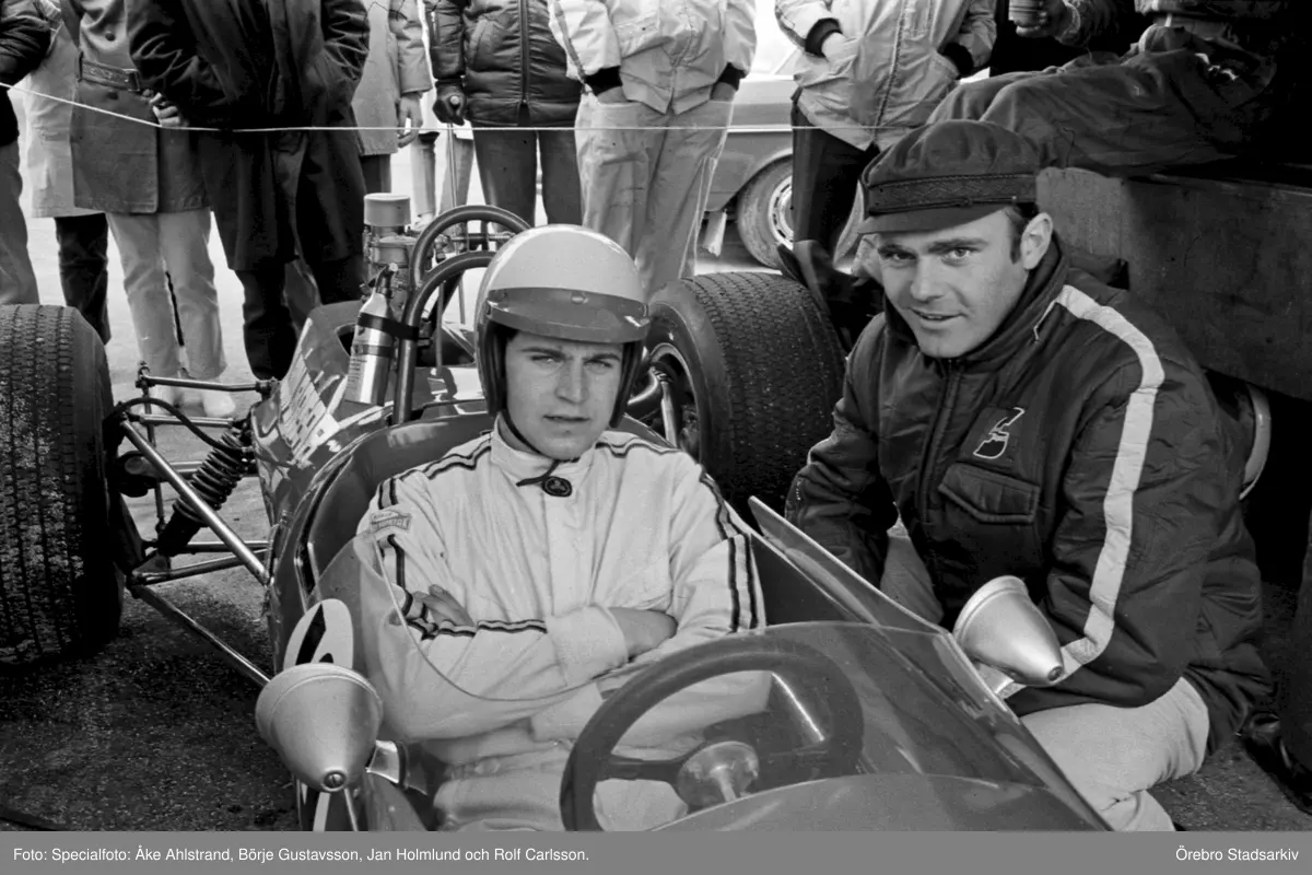 Palm med rådgivare. Velodromloppet. Karlskoga motorstadion. 1969-05-03