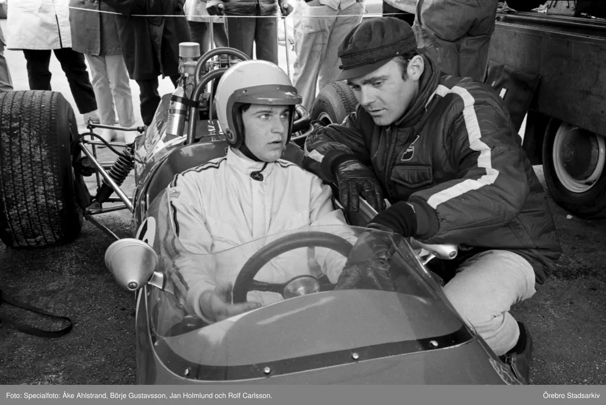 Prat i depån. Velodromloppet. Karlskoga motorstadion. 1969-05-03