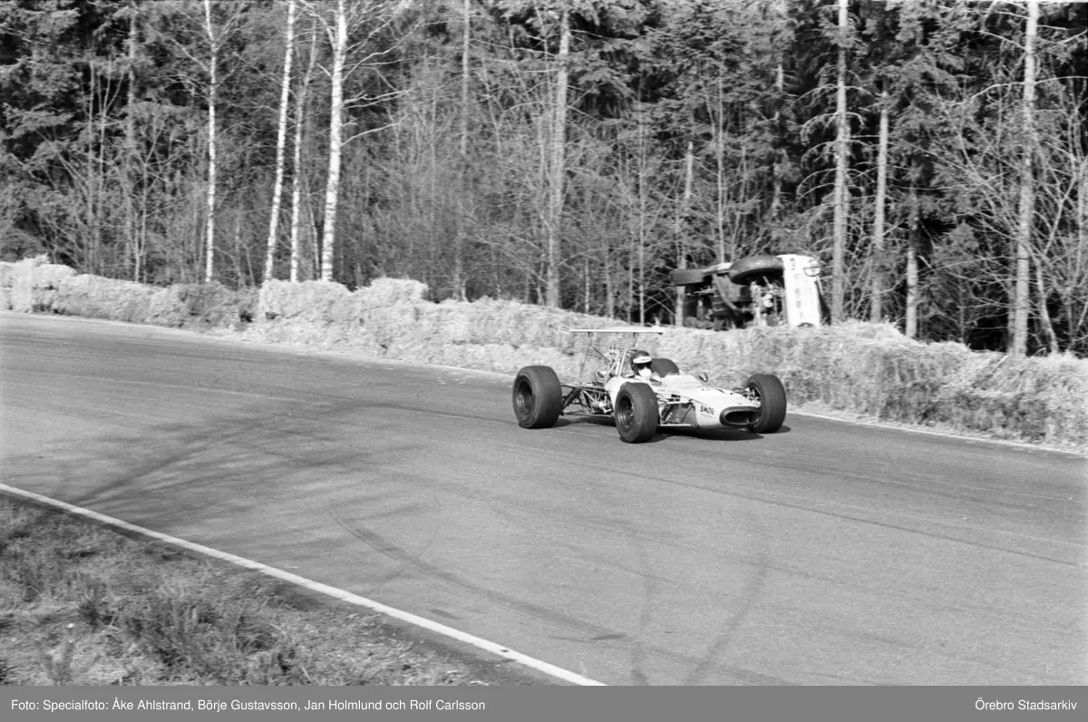 Ronnie Peterson passerar ett bilvrak på Karlskoga motorstadion, 1969-05-03