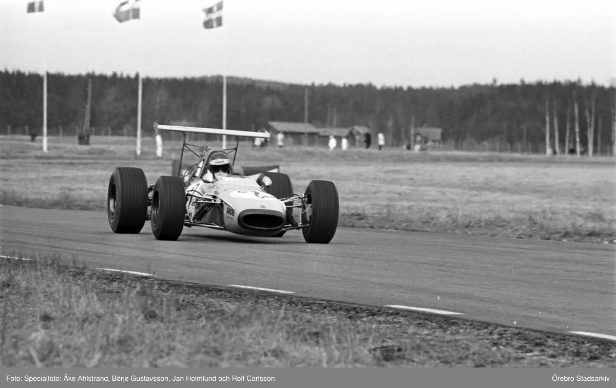 Full gas under Velodromloppet på Karlskoga motorstadion. 1969-05-03
