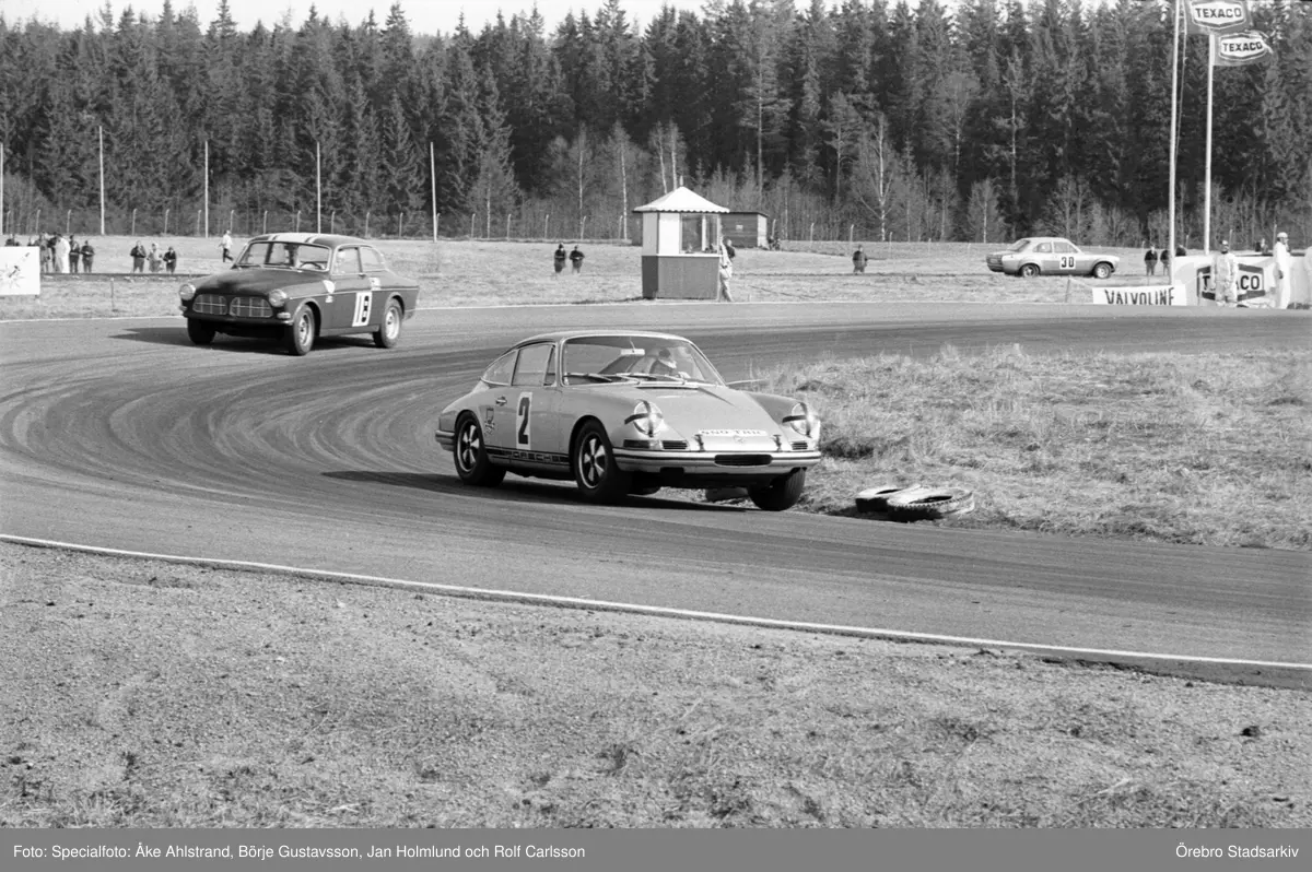 Esso drar på i kurvan. Karlskoga motorstadion, 1969-05-03