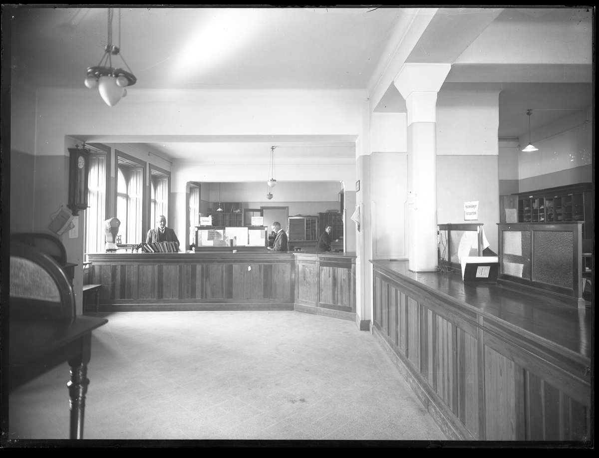 Titel: Postkontoret Stockholm 4. Interiör med personal.