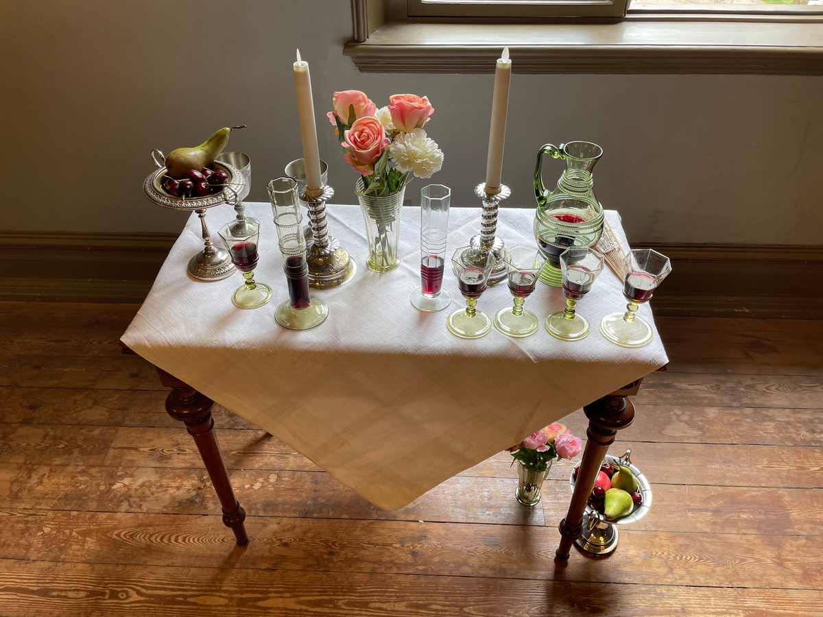 Vänersborgs museum. Invigning av utställningen "Brätte - staden som försvann". Renässansdansgruppen Fiorettos rekvisita