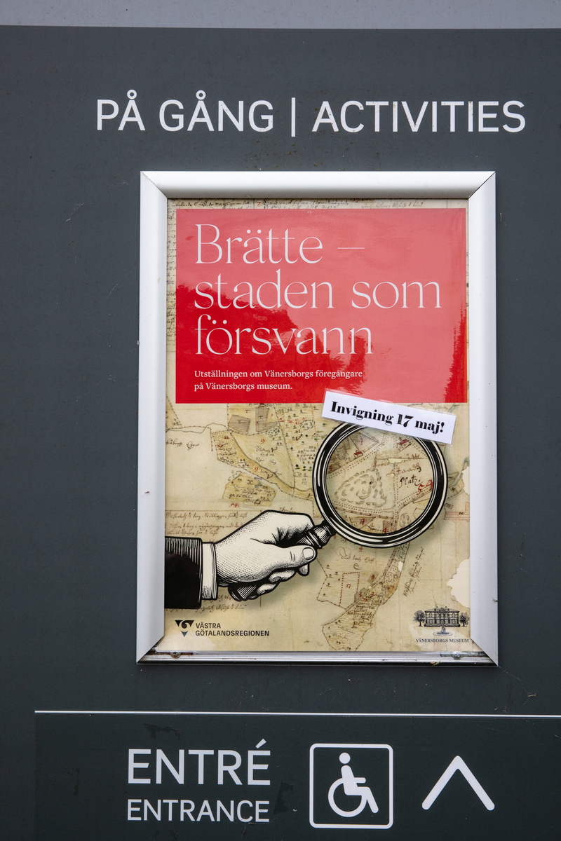 Vänersborgs museum. Invigning av utställningen "Brätte - staden som försvann". Informationstavla
