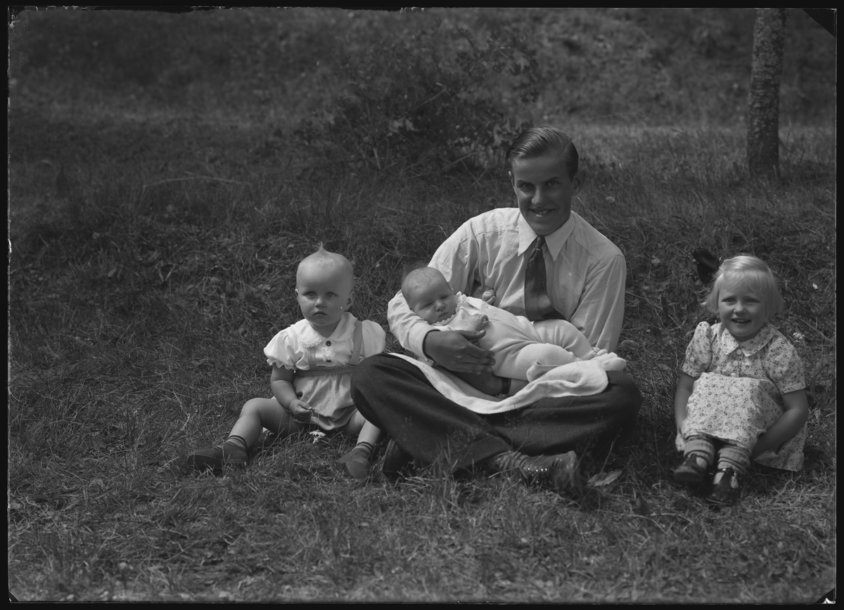 Grupporträtt, en man och tre barn. Ahlmén. Ur Gustaf Åhmans samling.
