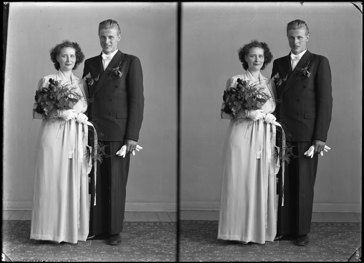 Bröllopsporträtt. Brudpar, Ejnar Danielsson, Mölntorp, Kolbäck.