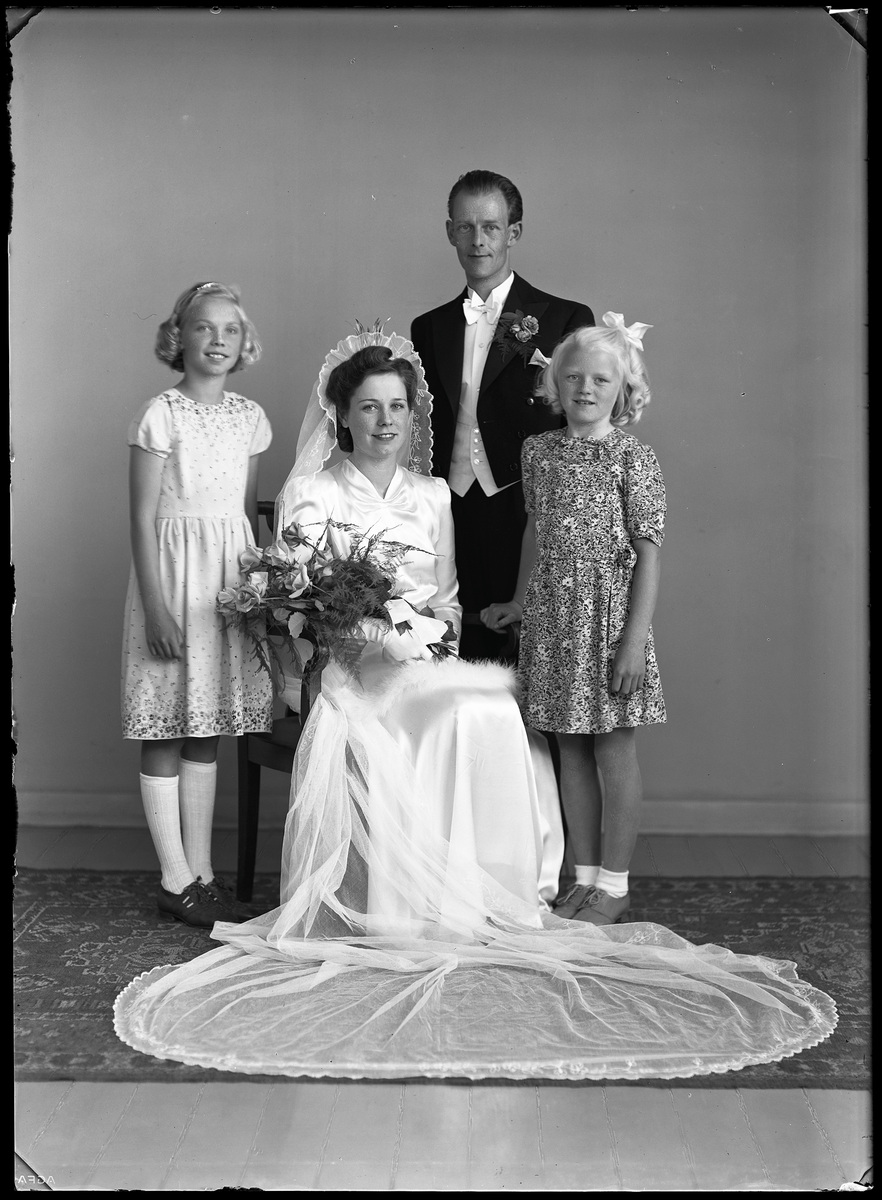Grupporträtt. Brudfoto, Hugo Nordqvist, Fridhemsgatan 37, Stockholm.