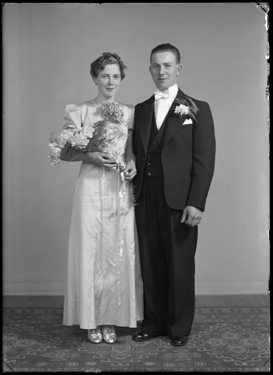 Bröllopsporträtt, brudpar. Arnold Rahm, Rallsta, Hallstahammar.