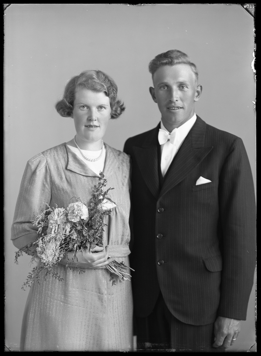 Bröllopsporträtt, brudpar. Lars Andersson, Äggeby, Strömsholm.