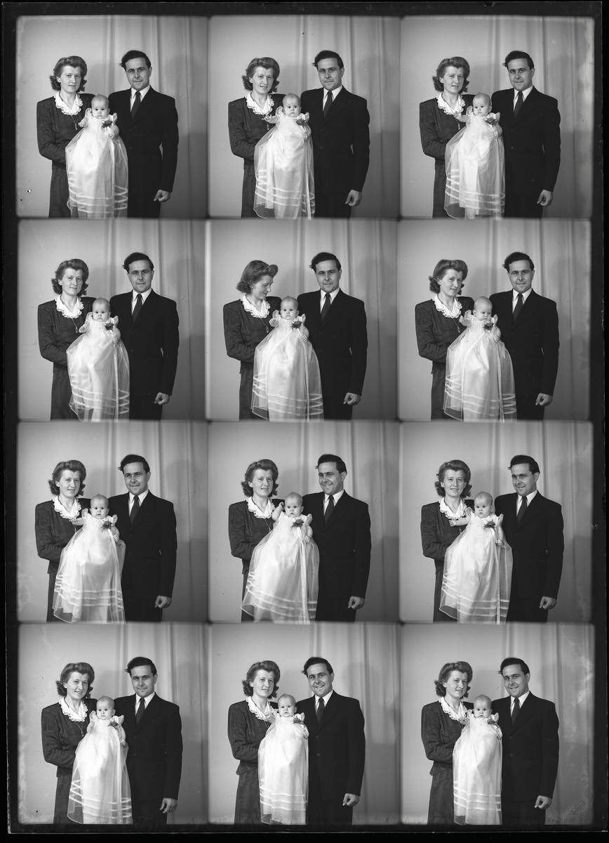 Grupporträtt, två vuxna och ett barn. Uno Pettersson, Sörstafors.