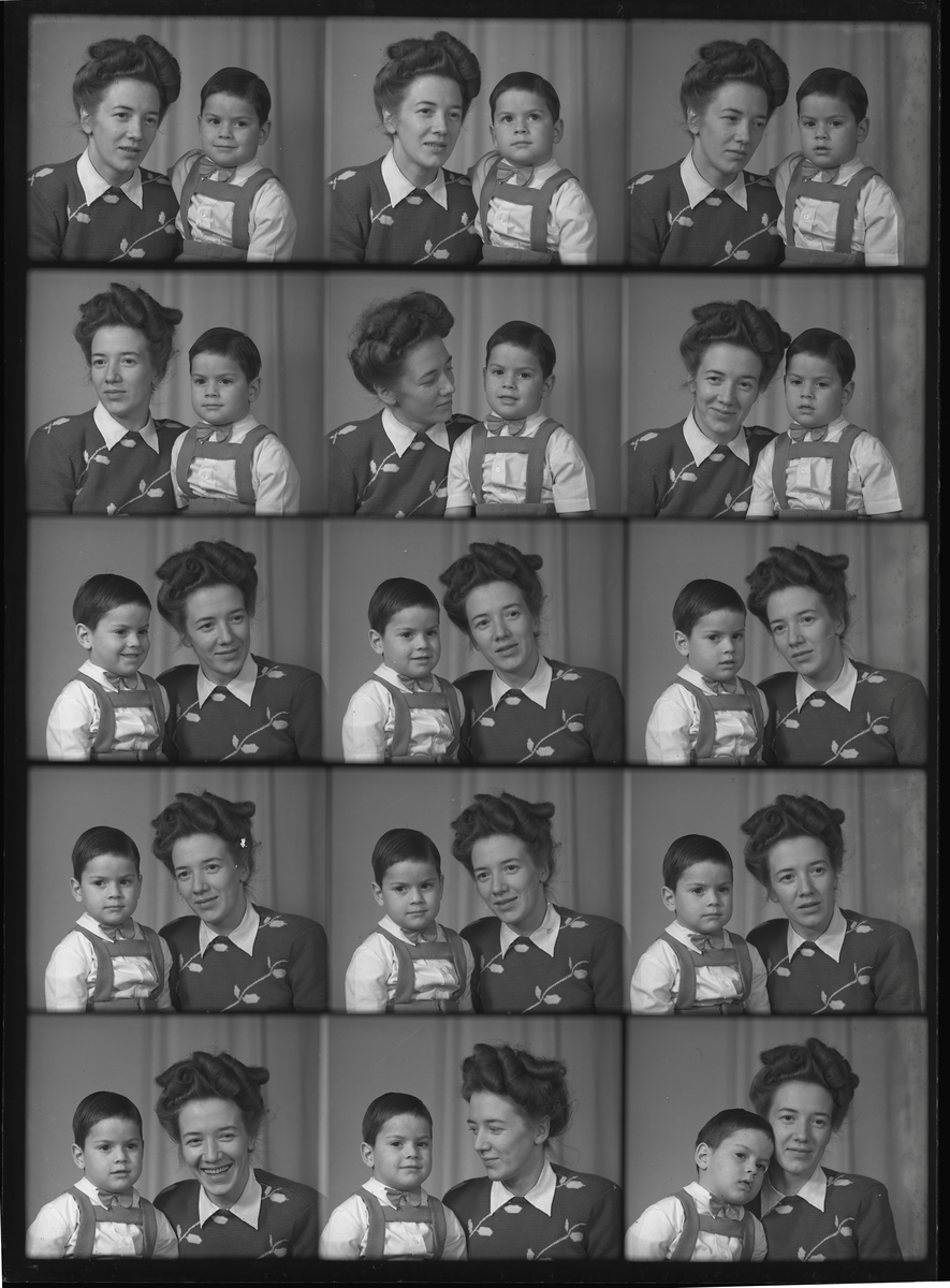 Grupporträtt. (Kvinna och barn). Polyfoto.