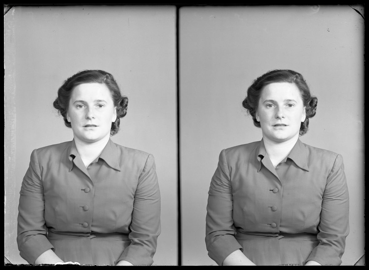 Kvinnoporträtt, pass, Gunborg Karlsson, Åby, Kolbäck.