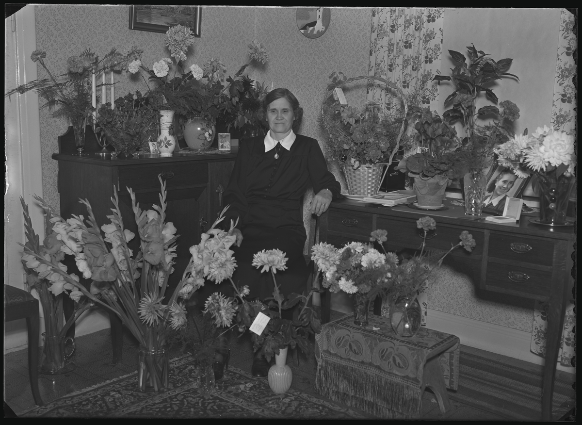 Kvinnoporträtt, 50-års foto. Fru Edit Andersson. Bv, stugan, Nybro. Ur Gustaf Åhmans samling.