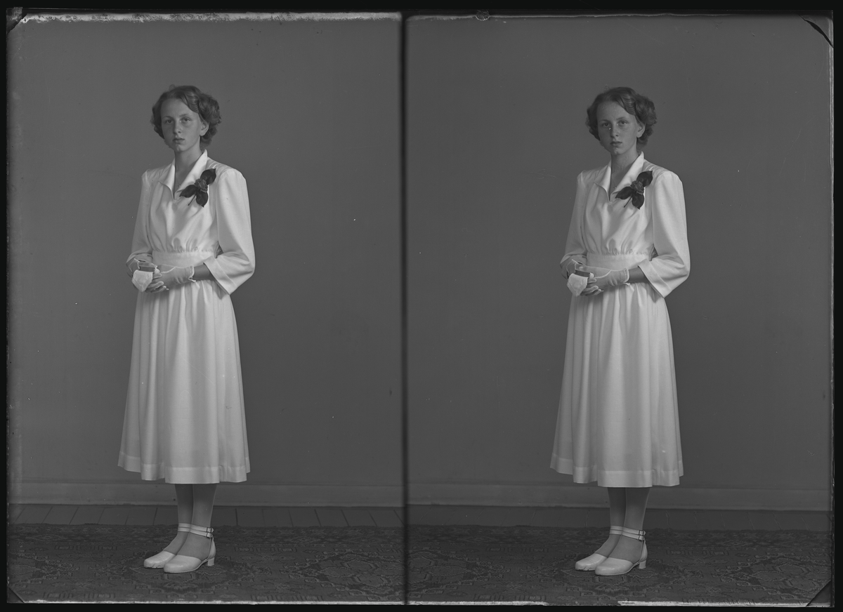 Porträtt, läsfoto. Ingrid Andersson. Kolbäck. Ur Gustaf Åhmans samling.