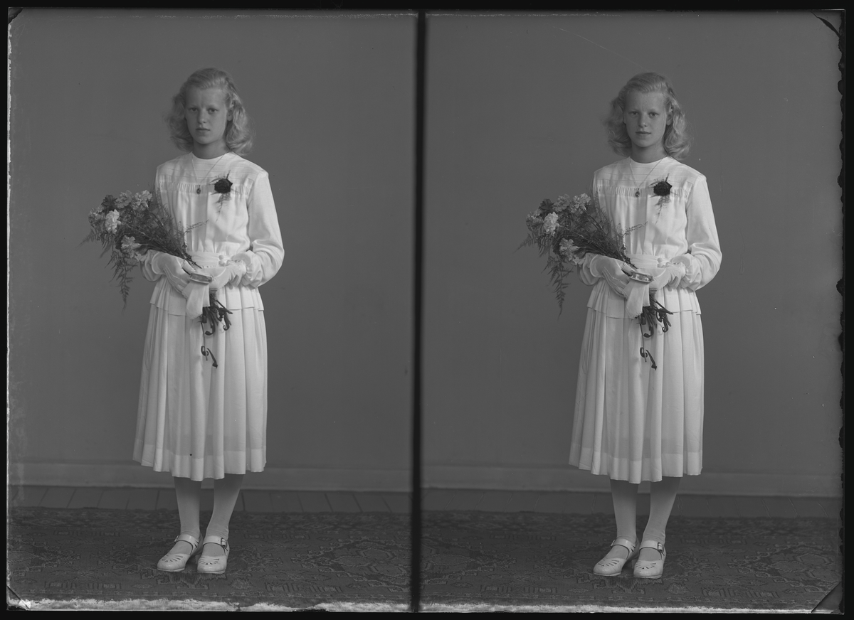 Porträtt, läsfoto. Ulla-Britta Gustafsson, Vänsta. Ur Gustaf Åhmans samling.