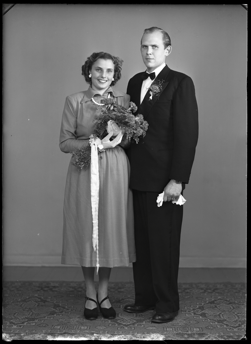 Bröllopsporträtt. Sigvard Olsson, Haga Tegelbruk, Enköping.