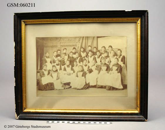Ett inramat fotografi föreställande lärerinnekursen i Glasgow 1898. Föreståndarinna v<r Margeret Black. Några andra som deltog var Anna Olsoni, Wiborg, Finland. Helga Helgeson, Kristania, Norge. Lotten Lagerstedt, Göteborg, Sverige.